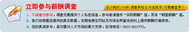 ★眉州人才市場薪酬調(diào)查,因為您的參與而加更精彩!